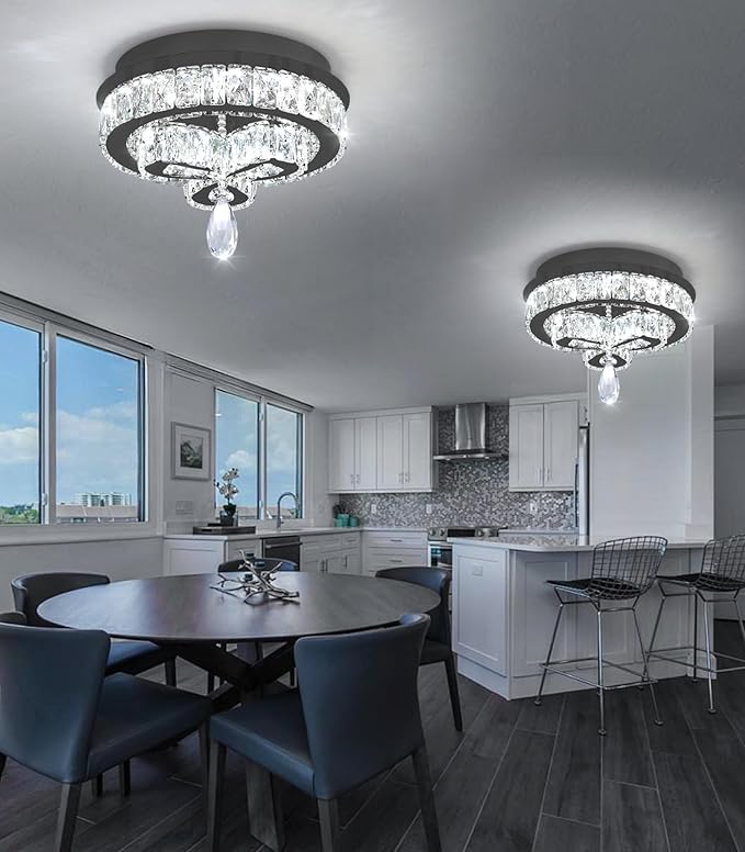 12'' Modern Crystal Chandelier LED Dimmable Flush Mount Ceiling Light Pendant Light for Hallway Living Room Bedroom Dining Room Foyer Black