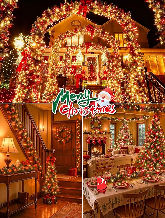 - End-to-End Connectable:Easily connect up to 10 sets (130FT total, 500 LEDs) with the connector. No extra multiple power outlets needed—customize length for large areas like rooftops, fences, porches and large Christmas trees