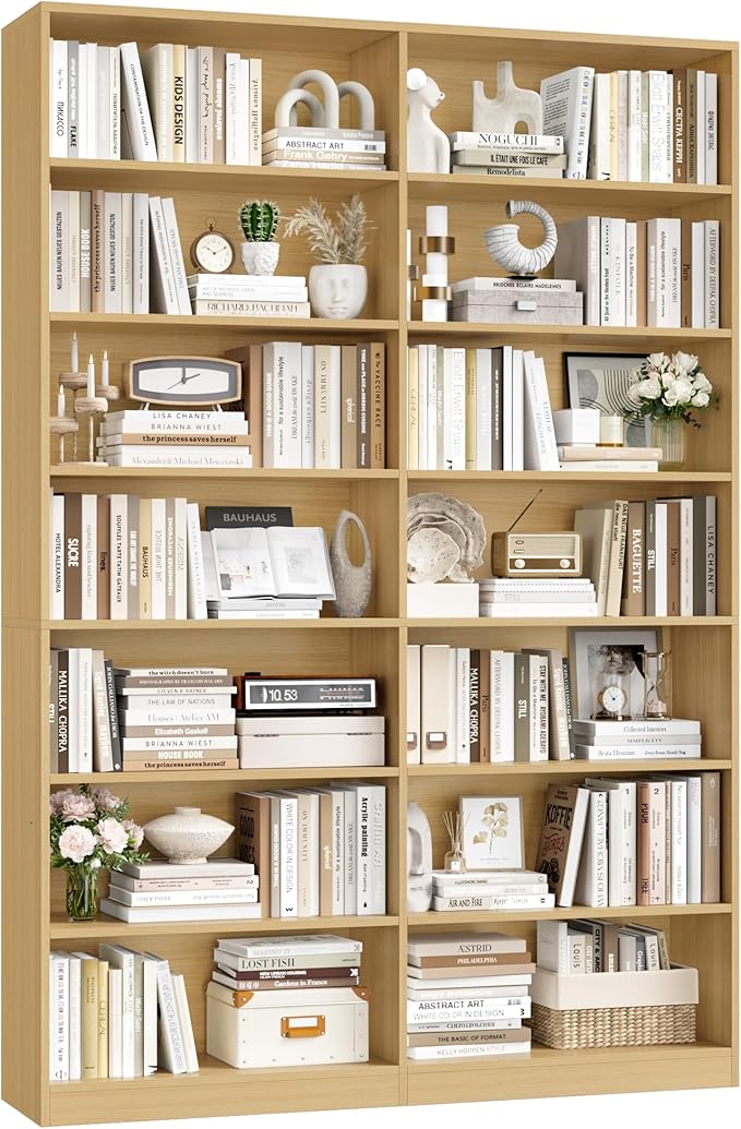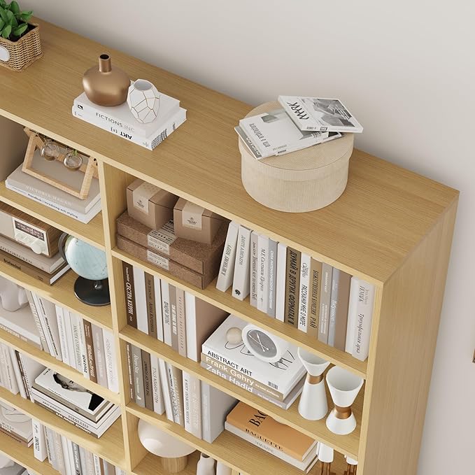 - Extra-Large Capacity Dual-Row Design: 7-tier dual-row structure with 14 individual compartments (each 11.5"D × 22.7"W × 11"H), this large bookshelf is perfect for organizing books, files, photo albums, decor, and more. Ideal for both home and office storage needs.