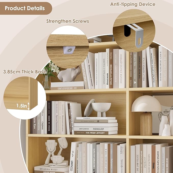 - Reinforced Structure + Triple Protection, Sturdy & Safe: This book shelf is made with 15mm thickened boards, each shelf supports up to 25kg (55 lbs). Features anti-tip metal brackets + reinforced back screws + 3.85cm sturdy base for triple protection, ensuring stability and safety.