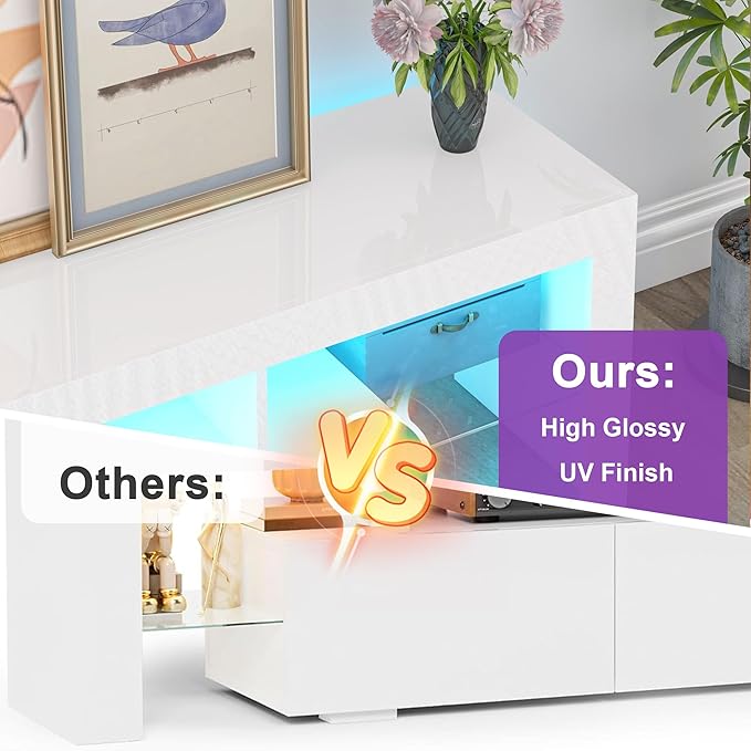 - 【Assembly and Service】- You can complete the installation according to the bedroom TV stand's instruction manual or installation video. If you have any quality or installation problems with the TV entertainment center with storage, we will provide you with excellent after-sales service. PLEASE NOTE: As it is a high gloss TV stand, there is a layer of transparent plastic protective film on the surface, please tear off the protective film after assembly.