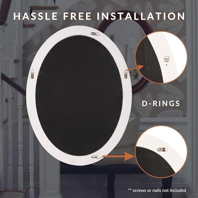 - BEAUTIFUL FOCAL POINT - Oval wood framed hanging mirrors for wall is the perfect focal point for any vintage dresser, entryway, bathroom, bedroom or any room in your home