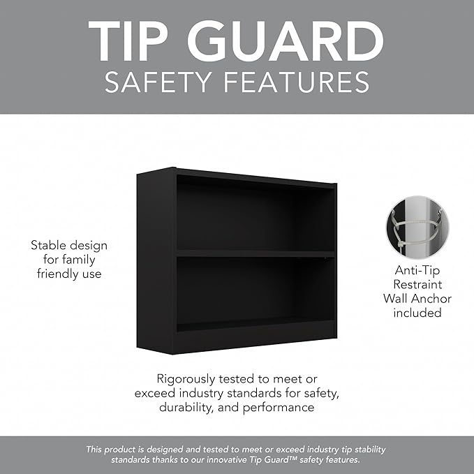 Bush Furniture Universal Bookcase, Low Storage and Display Bookshelf for Home Office or Living Room Organization, 2 Shelf, Black
