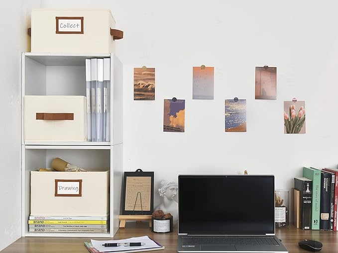 - Storage baskets with two sewn-in PU handles for easy carrying around, and the label holder for easy marking and identifying the items inside.