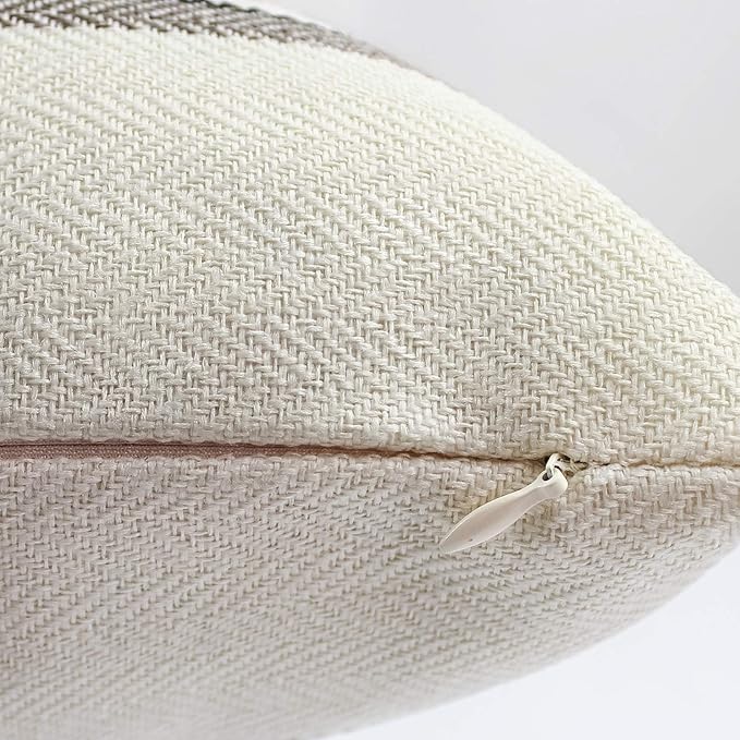 - Material: Made of High quality Polyester.Solid three-dimensional linen fabric plaid pattern; because this Material makes as faux linen, so it is not soft, it is a little feel rough; Because we use Brand SBS zipper, it does not slide very easily, but more durable for use.
