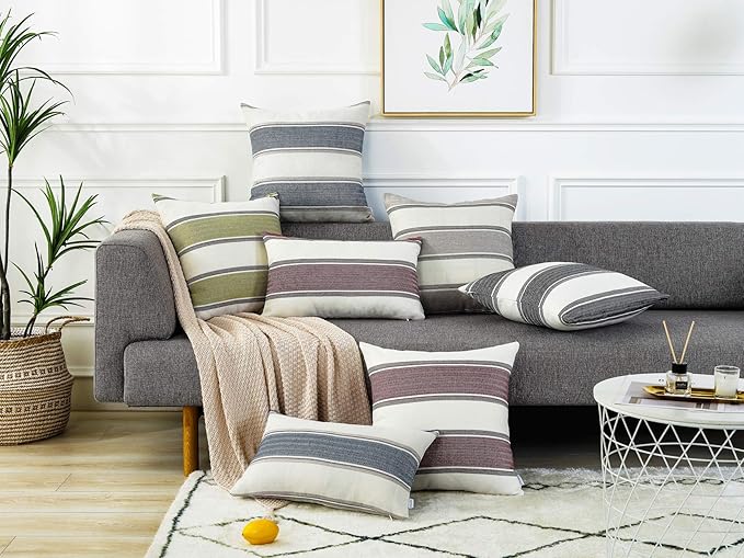 AmHoo Pack of 2 Farmhouse Linen Throw Pillow Cover Cushion Stripe Decoration Buffalo Retro Pillowcase with Hidden Zipper for Sofa Bedroom Car 12 x 20 Inch Blue