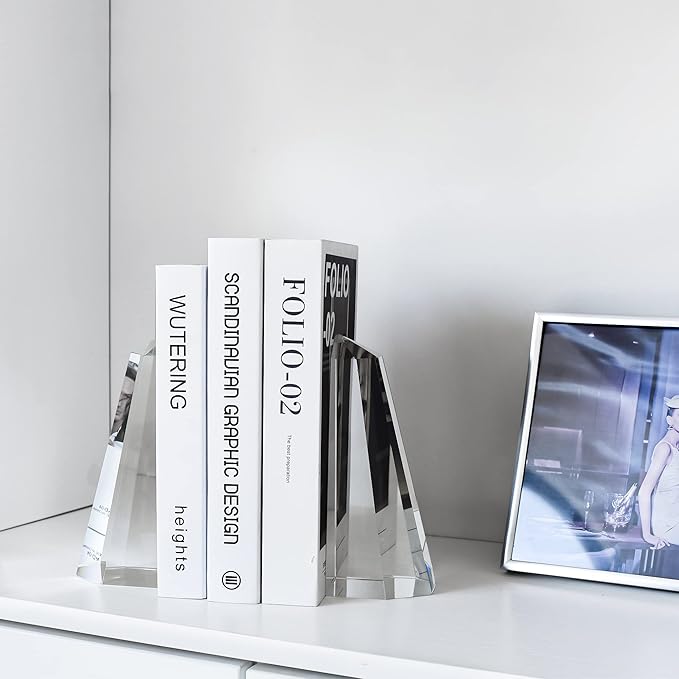 Kitcom Handmade Crystal Bookends Half-Obelisk Design, 1 Pair of Decorative Tabletop Bookends for Office, Home, Desk