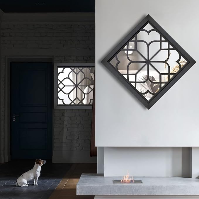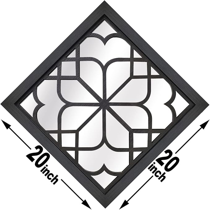 - NICE SIZE:This is square modern mirror,Its size is 20”x20”.This is a Very well design, solid and looks great.This mirror really adds some sophistication to the rustic vibe.It's a modern wall decor gift and goes well with any decor.