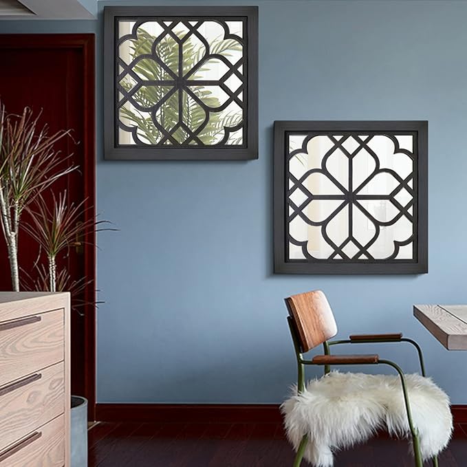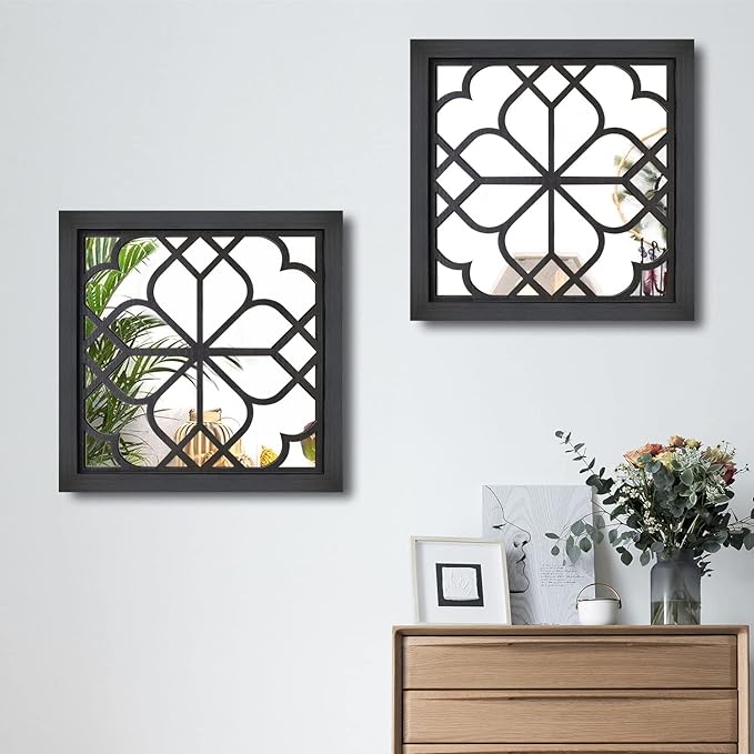 Wocred 2 PCS Square Wall Mirror,Gorgeous Rustic Farmhouse Accent Mirror,Black Entry Mirror for Bathroom Renovation,Bedrooms,Living Rooms and More(20”x20”)