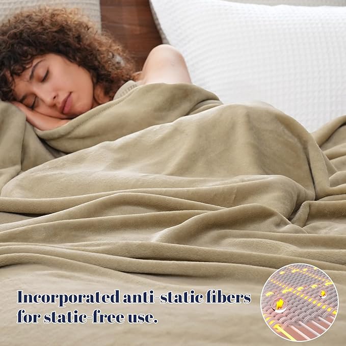 PHF Ultra Soft Fleece Blanket King Size, No Shed No Pilling Luxury Plush Cozy 300GSM Lightweight Blanket for Bed, Couch, Chair, Sofa Suitable for All Season, 108" x 90", Khaki