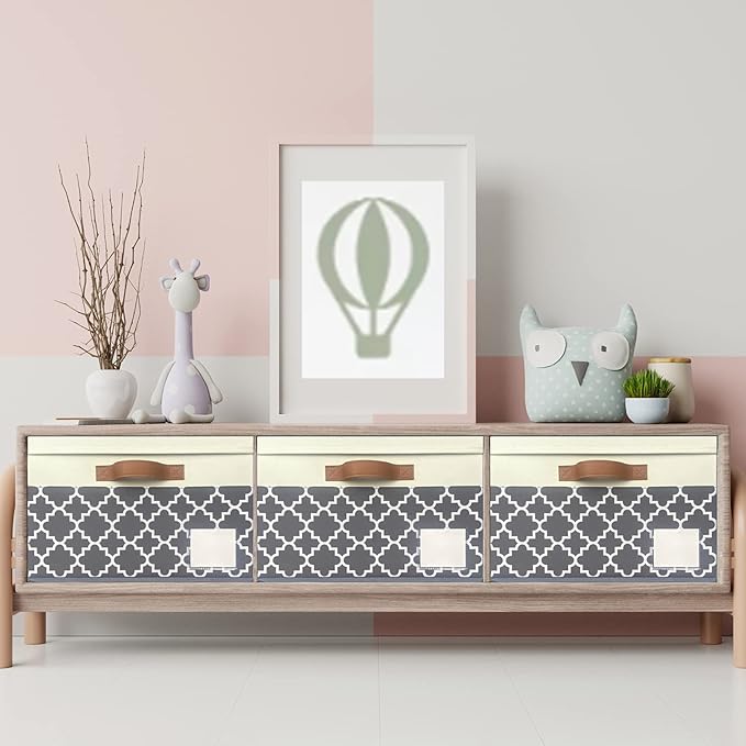 - LARGE DIMENSION: Set of 3, dimensions (each): 15(L) x 11(W) x 9.7(H) inch, storage capacity of the cube storage bins are 26L, which can hold a large number of items to organize your home or office. Each large storage bins with lids has an eye-catching label to classify the stored items. Perfect size and neutral color match most of your home decorations and styles while keeping your home organized