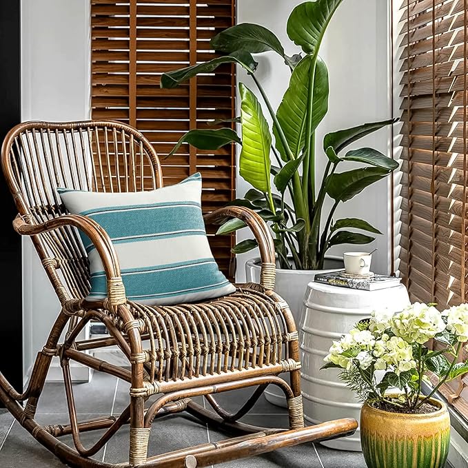 AmHoo Pack of 2 Farmhouse Linen Throw Pillow Cover Cushion Stripe Decoration Buffalo Retro Pillowcase with Hidden Zipper for Sofa Bedroom Car 24 x 24 Inch Teal