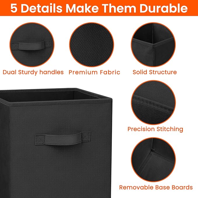 - 【FIT WITH MOST OF FURNISHING】Measuring 13x13x13 inches, our 8 pack Black clothes storage bins could fit perfectly with most of cube organizer, shelf, closet, from bedroom to playroom to laundry room, to store clothes, linens, toyes, books etc. Great for dorm room.