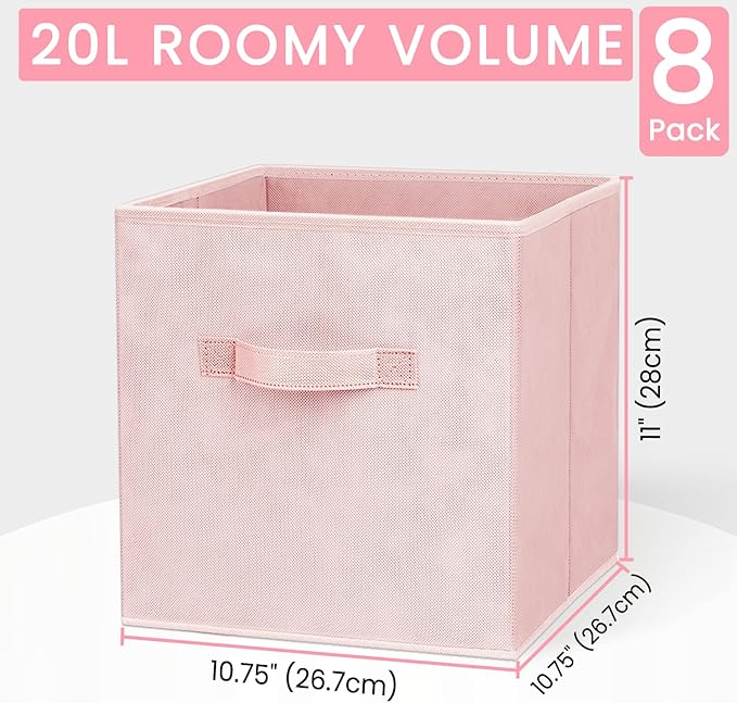 - 【FIT WITH MOST OF FURNISHING】Measuring 10.5x10.5x11 inches(LxWxH), our 8 pack Pink clothes storage bins could fit perfectly with most of cube organizer, shelf, closet, from bedroom to playroom to laundry room, to store clothes, linens, toyes, books etc. Great for girl's room and dorm room.