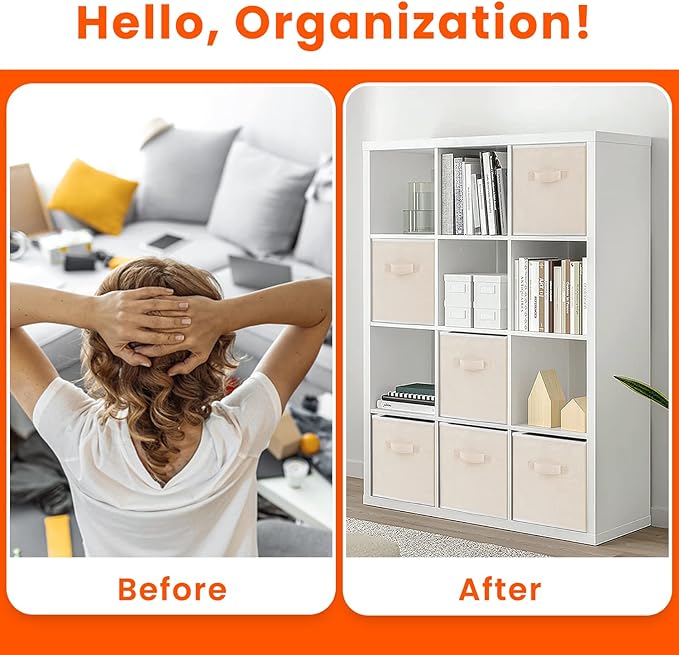 - 【FIT WITH MOST OF FURNISHING】Measuring 13x13x13 inches, our 8 pack Beige clothes storage bins could fit perfectly with most of cube organizer, shelf, closet, from bedroom to playroom to laundry room, to store clothes, linens, toyes, books etc. Great for dorm room.