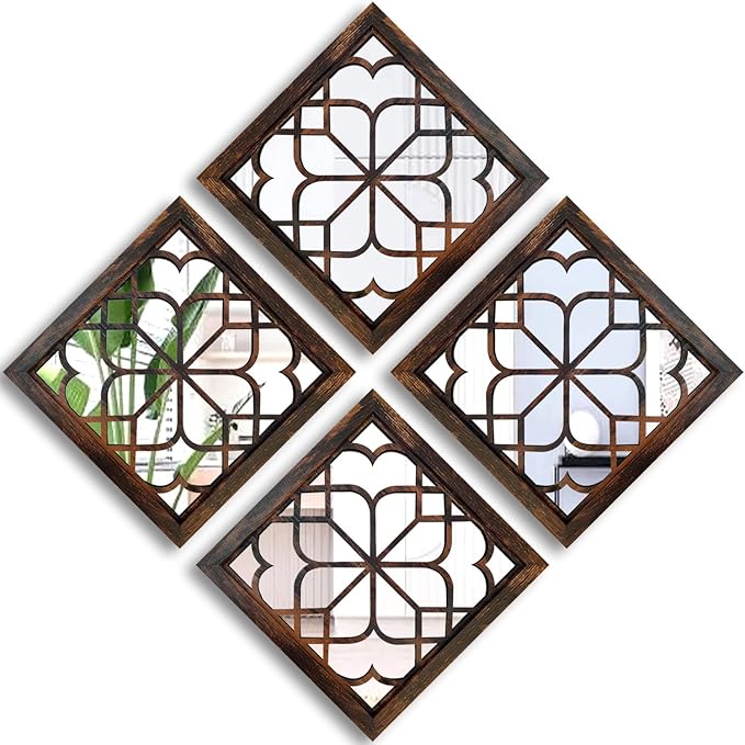 Wocred Set of 4 Mirrors Square Wall Mirror,Gorgeous Rustic Farmhouse Accent Mirror,Caramel Color Entry Mirror for Bathroom Renovation,Bedrooms,Living Rooms and More (12”x12”4pcs)