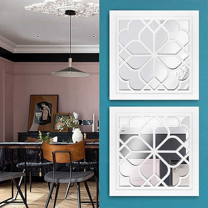 Wocred Set of 2 Mirrors Square Wall Mirror,Gorgeous Rustic Farmhouse Accent Mirror,White Color Entry Mirror for Bathroom Renovation,Bedrooms,Living Rooms and More(12”x12”)