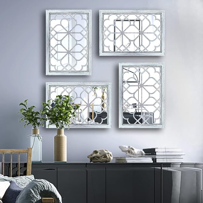 Wocred Set of 2 Rectangular Wall Mirror,Gorgeous Rustic Farmhouse Accent Mirror,Rustic White Color Entry Mirror for Bathroom Renovation,Bedrooms,Living Rooms and More(11”x15”)