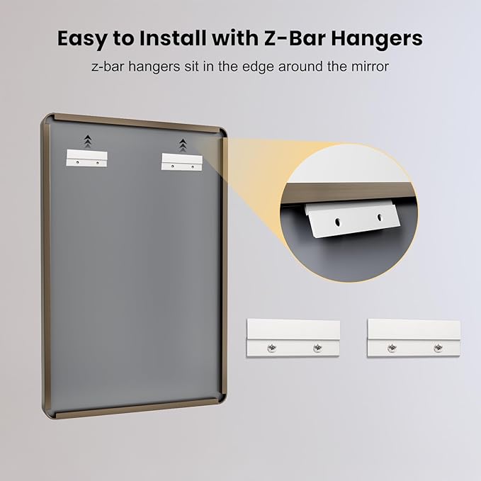 - 【Secure & Easy Hanging Option】: The sturdy wall mirror includes two Z-bar brackets; The brackets are sturdy enough to support the weight of the mirror and ensure the mirror stays securely and sturdily against the wall; Very easy to install