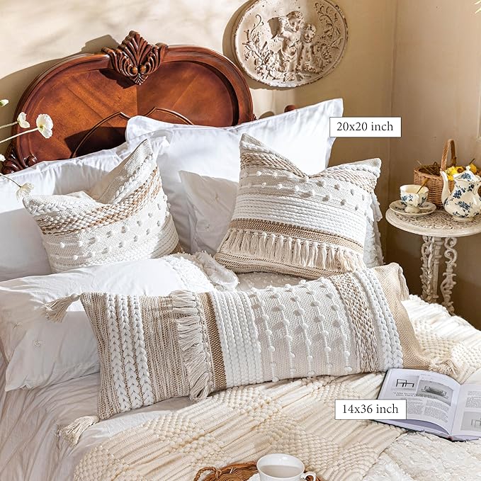 - Cover Only: Boho Decorative Lumbar Throw Pillow Cover 14x36 Inch for bed