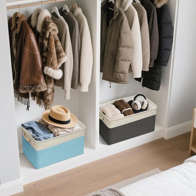 - [VERSATILE STORAGE] Measuring at 15"x11"x9.5", these fabric storage baskets are perfect for organizing a wide range of items, including clothes, toys, books, and other household items. They are designed to fit perfectly on laundry organization and storage, in closets, or under beds, maximizing your storage space and keeping your home clutter-free.