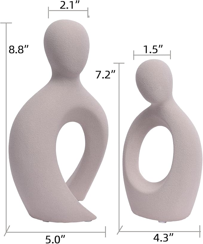 - 【Durable & Textured Statue】This couple statue is 5.03''*4.25''*8.85''(Tall)/4.33''*2.56''*7.28''(Short). It's made of high quality ceramic and the surface of this unique shelf decor is frosted, more special than ordinary smooth ceramic products, and more textured.