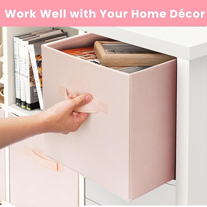 - 【FIT WITH MOST OF FURNISHING】Measuring 13x13x13 inches, our 8 pack Pink clothes storage bins could fit perfectly with most of cube organizer, shelf, closet, from bedroom to playroom to laundry room, to store clothes, linens, toyes, books etc. Great for dorm room.