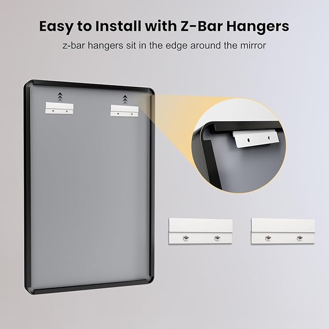 - 【Secure & Easy Hanging Option】: The sturdy wall mirror includes two Z-bar brackets; The brackets are sturdy enough to support the weight of the mirror and ensure the mirror stays securely and sturdily against the wall; Very easy to install