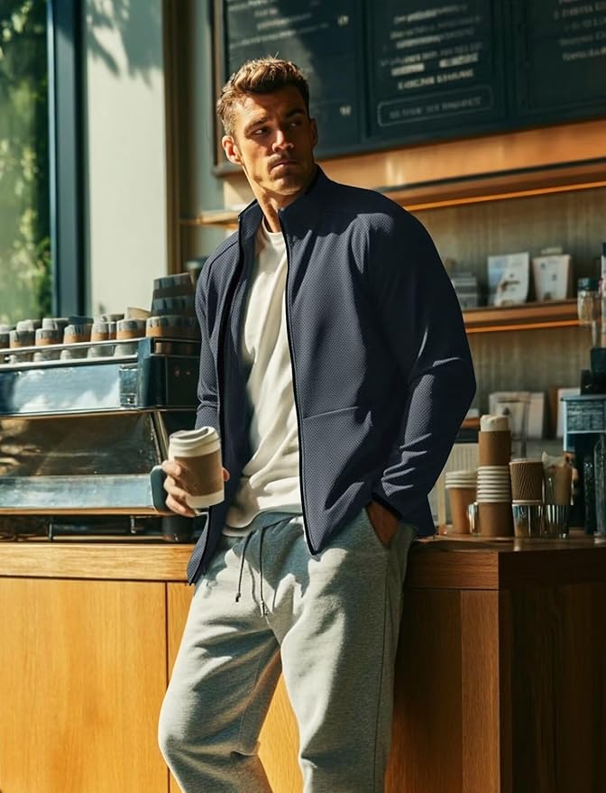 Zengjo Men's Track Jackets Full Zip Running Athletic Workout Lightweight Windproof Jacket with Zipper Pockets Quick Dry