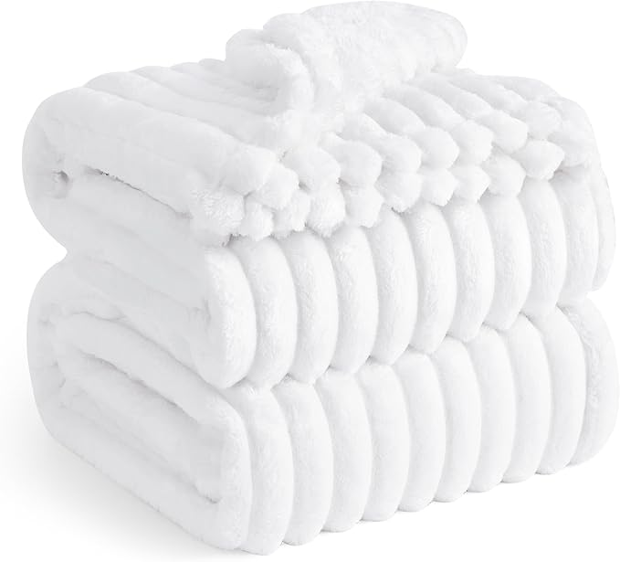 Bedsure GentleSoft Queen Blanket for Couch - Cozy Soft Blankets for Women, Cute Small Fleece Throws for Girls, White, 90x90 Inches