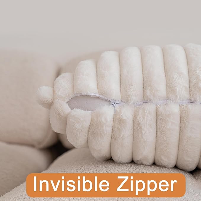 Double-Sided Faux Fur Plush Throw Pillow Covers 18x18 Set of 2 Fuzzy Striped Soft Cozy Pillowcase Luxury Decorative Pillows Square Shaggy Cushion Covers for Couch Sofa Bed,Cream White