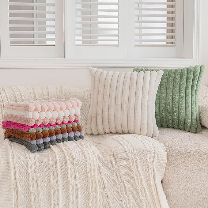 - Double Sided Faux Fur Pillows: Our striped pillow covers are made from 350 GSM ultra soft faux rabbit fur, providing a soft and cozy experience. Package contains pack of 2 fluffy pillow cases 18x18 Only, Pillow Inserts Are Not Included