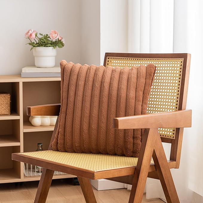 - Double Sided Faux Fur Pillows: Our striped pillow covers are made from 350 GSM ultra soft faux rabbit fur, providing a soft and cozy experience. Package contains pack of 2 fluffy pillow cases 18x18 Only, Pillow Inserts Are Not Included