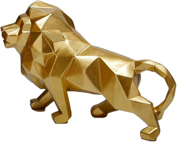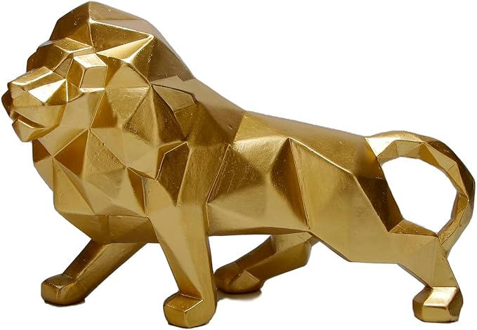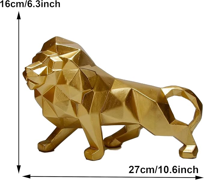 - Dazzling Elegance: The Golden Lion Sculpture is a testament to refined artistry, adding an aura of opulence to your living space. This abstract geometric animal statue shines with its luxurious golden finish, making it an exquisite focal point for coffee tables and bookshelf niches