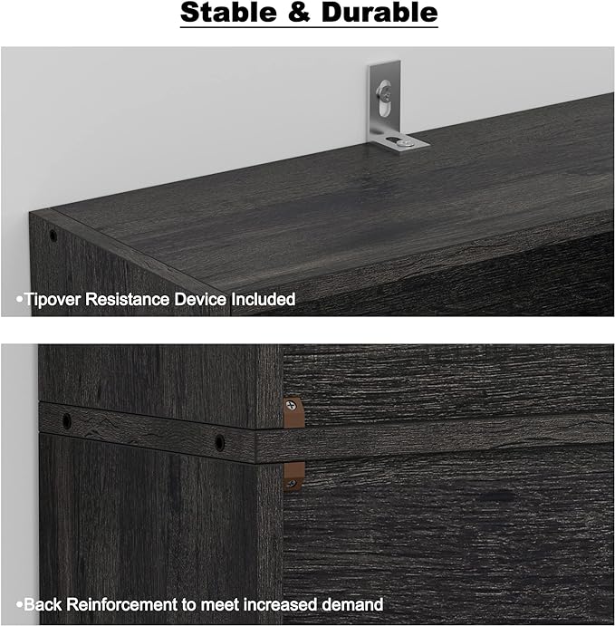 - Stable Construction: With strengthen screws and the tipover resistance device, the bookcase is more stable