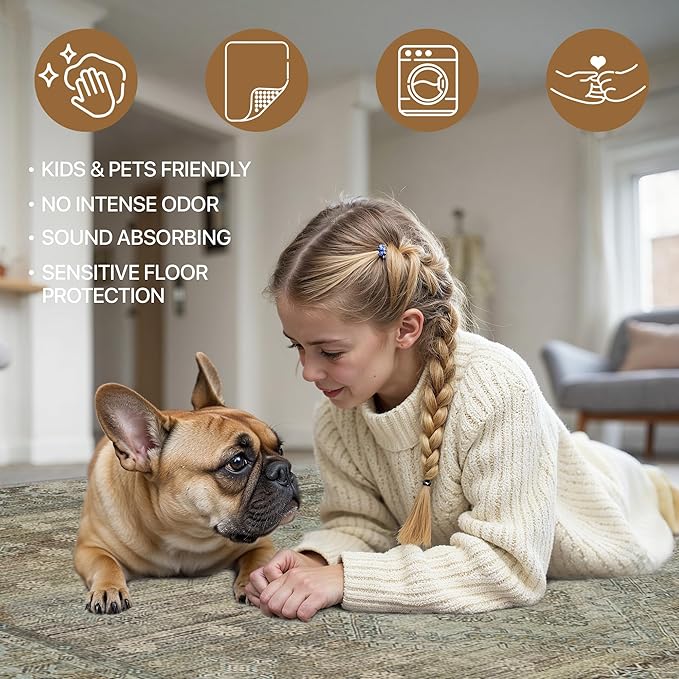 - Non-Slip Backing: Our easy-care rugs feature a non-slip backing that securely anchors the carpet, preventing slips and slides. No need for additional padding, ensuring a secure environment for children, pets, and seniors during everyday use