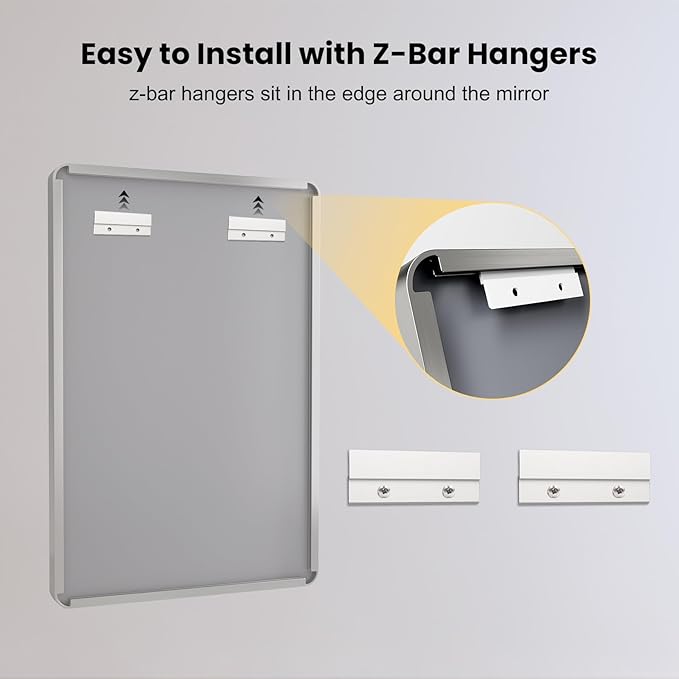 - 【Secure & Easy Hanging Option】: The sturdy wall mirror includes two Z-bar brackets; The brackets are sturdy enough to support the weight of the mirror and ensure the mirror stays securely and sturdily against the wall; Very easy to install