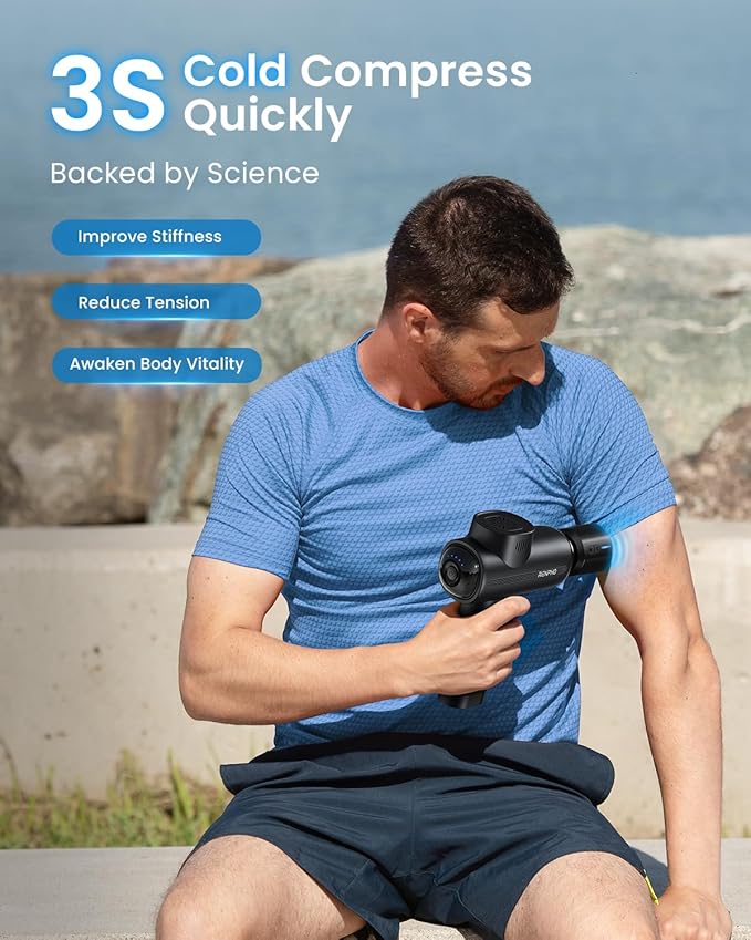 - Hot and Cold Therapy: Renpho Massager gun deep tissue with Heat comes with a heating and cooling massage head(No built-in battery) that can heat up to 113 °F (45 °C) or cool down to 47 °F(8 °C) for deeper muscle relaxation and stress relief