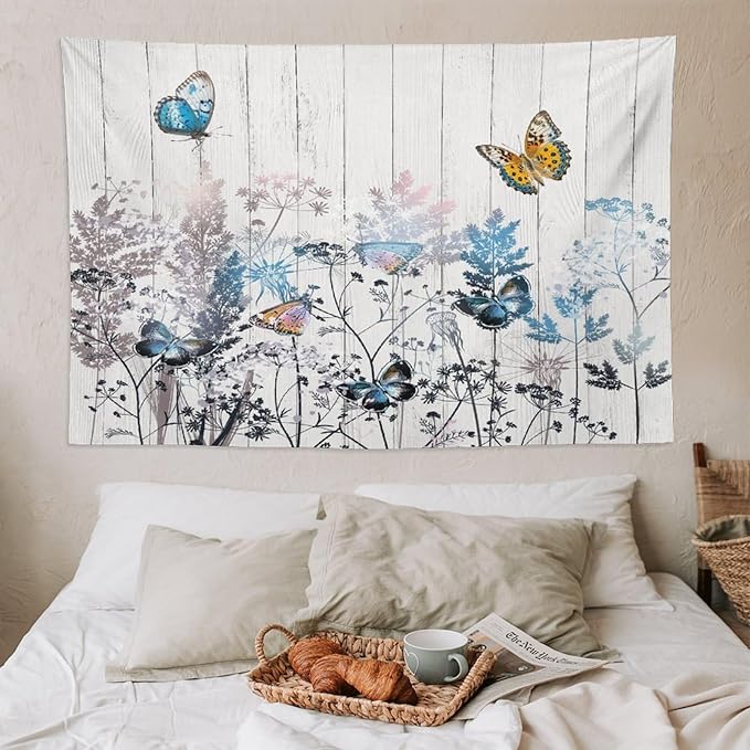 Nature Dandelion Tapestry,Rustic Floral Wood Plank Butterfly Theme Print Tapestries for Living Room Party Beach Picnic Blankets Tablecloths Wall Decor, 60x90 in