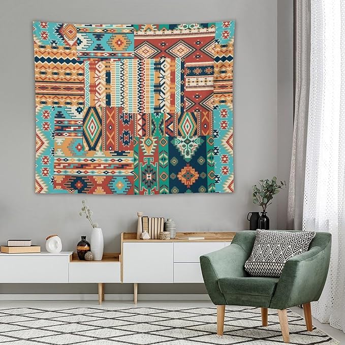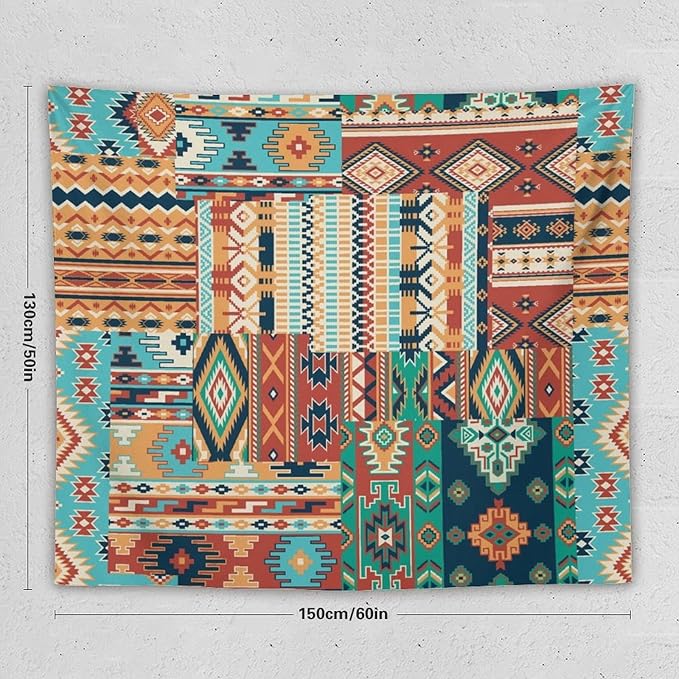 Kurtect Aztec Tapestry,Southwestern Tribal Native American Vintage Abstract Pattern Tapestries for Party Beach Picnic Blankets Tablecloths Living Room Wall Deocr, 50x60 in