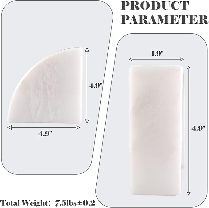 - NATURAL MATERIAL: The heavy duty bookend weight 7.5LB and are equipped with 4 non-slip pads to effectively minimize scratches on your desktop. Make your reading time more relaxing and ensure the safety of you and your family with this marble beookend.