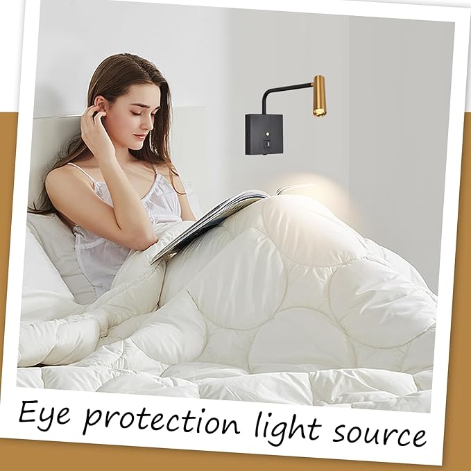 - Fast USB C & A Ports: The plug in wall sconces is designed with 2 USB charging ports(5V/2.1A) on the base, you can charge two devices at once, very useful to charge your mobile phones, tablets, Phones, and so on, The USB port functions regardless of whether the bedside reading lamp is on or off.