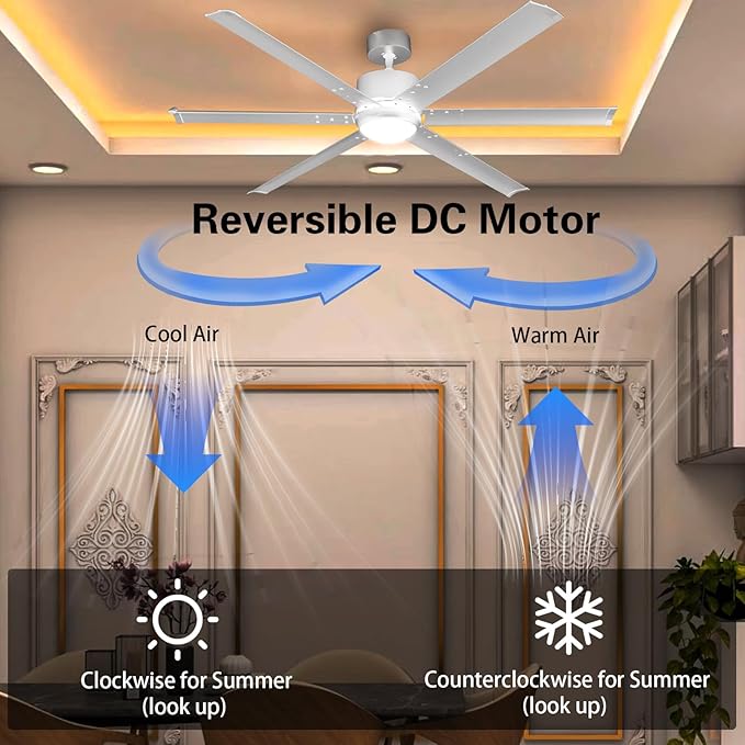 - REVERSIBLE: This ceiling fan light is equipped with a brushless DC motor, ensuring quiet operation and a long lifespan. You can easily switch the rotation: clockwise for cooling down with refreshing air in summer, and counterclockwise to circulate warm air from the ceiling in winter.