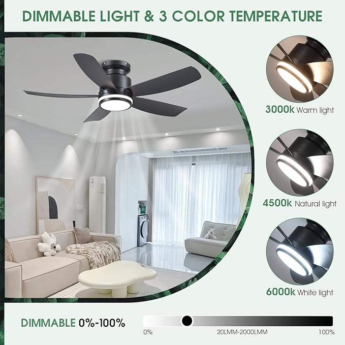- 【3 CCT and Stepless Dimming】This Wiviniya fan light has 3 color temperatures (3000K, 4000K, 6000K) to choose from, with a dimmable range of 10% - 100%. Using the remote control or APP, you can easily adjust the lighting to suit your lighting needs in different scenes.