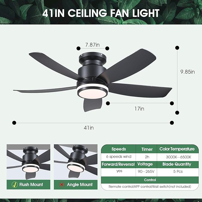 - 【Remote & APP Control】Super-convenient control ways, allowing you to control the fan and light without the need to stand up. With 6 speed wind, lighting adjustment, one-click on night light, 2-hour timing off (fan only), separate on/off lights or fans, etc. Able to meet your various needs, it is an ideal alternative to traditional fans or chandeliers. (Tips: APP download and instruction video are available on the product page)