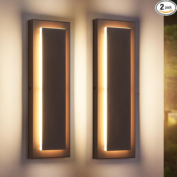 - Elegant Modern Sconces Wall Lighting Design:Our outdoor long wall light 2 packs have a sleek and minimalism design that adds a touch of style to any exterior entryway. With a 360° beam angle, the 3-tier acrylic exterior wall sconces offering 36 W more enough brightness light to illuminate your way home. Product Size: 15.7*7*2.6IN