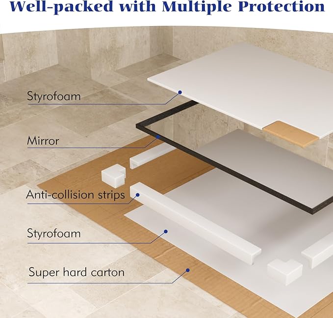 - Safety Glass: Feel secure with tempered, shatterproof glass reinforced by an anti-shatter film; This bathroom vanity mirror is designed to withstand impacts, eliminating worries about breakage in busy households.