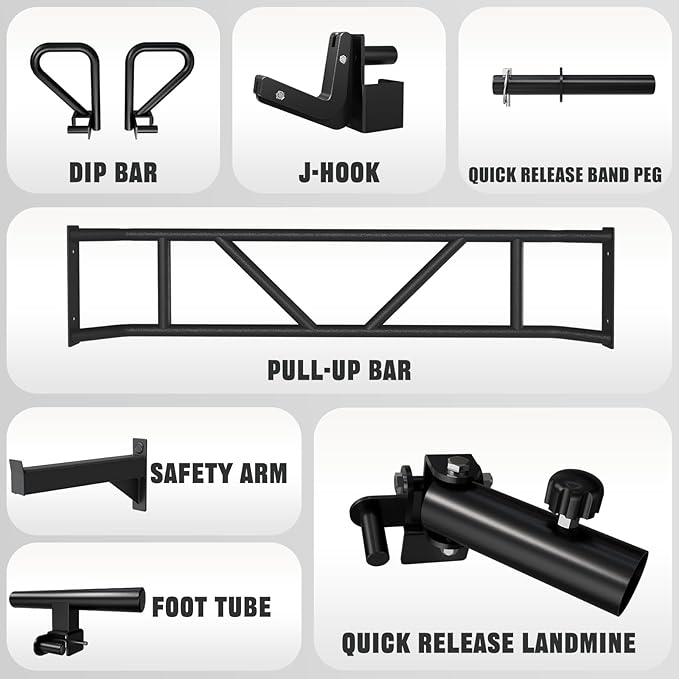- Powerful Storage System: The Squat Rack stands out with its powerful storage system, featuring 5 top rear hooks, central storage crossbeam, and 6 weight plate holders for convenient organization of weights and accessories. Elevate your home gym experience with a clutter-free and organized space.