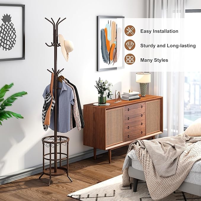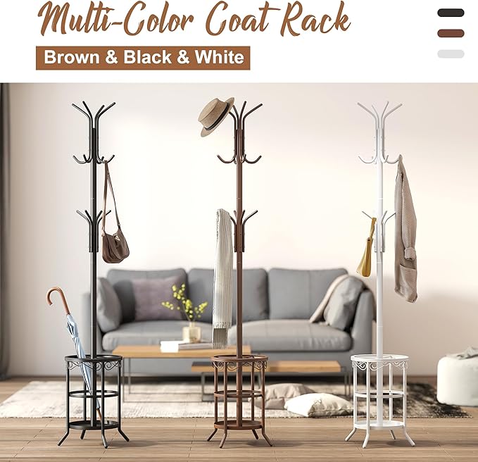 - Sturdy and stable: the sturdy metal material keeps the coat rack balanced, even with heavy coats and multiple umbrellas, the coat rack won't wobble or sway