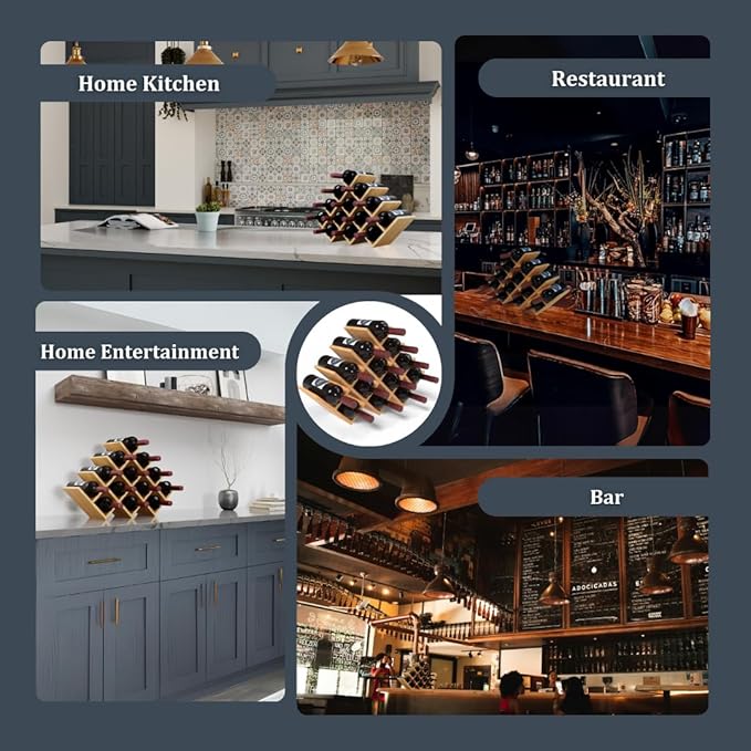 - Eco-Friendly Material: The Wine Stack Modern Lattice Racks are made from eco-friendly bamboo material. The bamboo is finished with a glossy polish, highlighting the natural beauty of the light wood color and grain, blending seamlessly with your decor aesthetic.